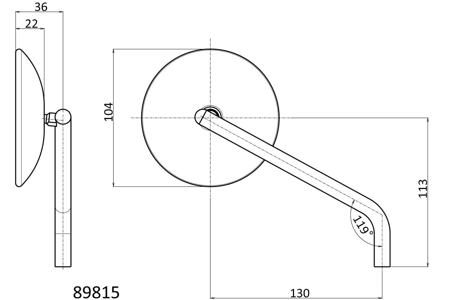 Material mirror arm: steel