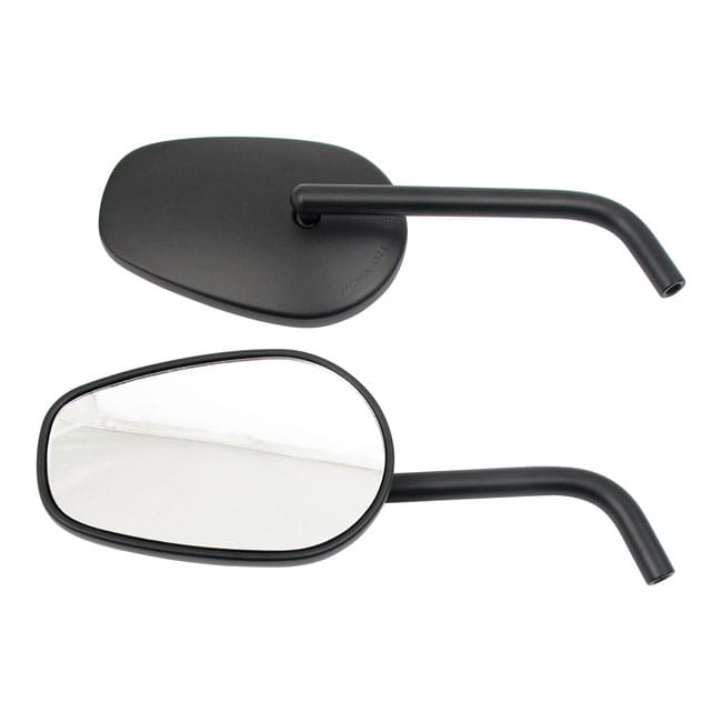 With M10 x 1.25mm threaded hardware. With Yamaha adapter right. Mirror head dimensions: 140mm wide x 90mm high. Overall height bottom stem to top mirror head: 240mm. Overall width: Bottom stem to mirror head end: 150mm. ECE approved.