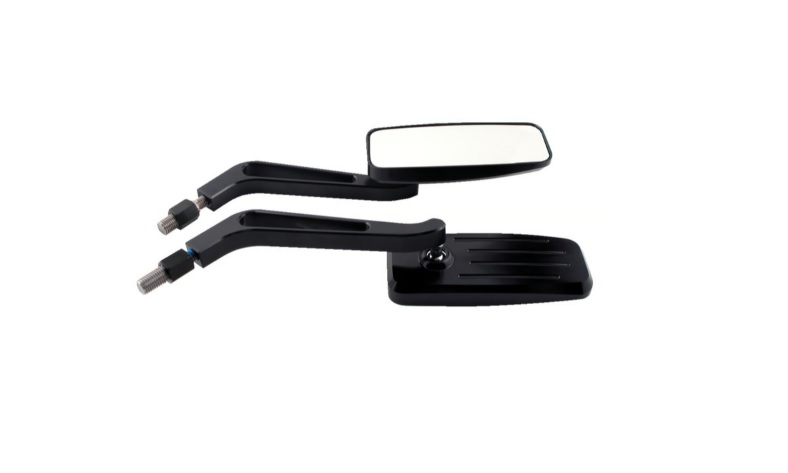 High-quality, handlebar mirror with a rectangular head and blue-tinted mirror glass for optimum glare protection.