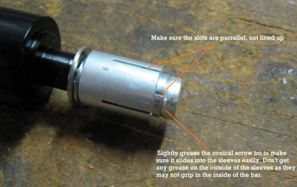 - Dokręć śrubę przed próbą dopasowania jej do drążka.