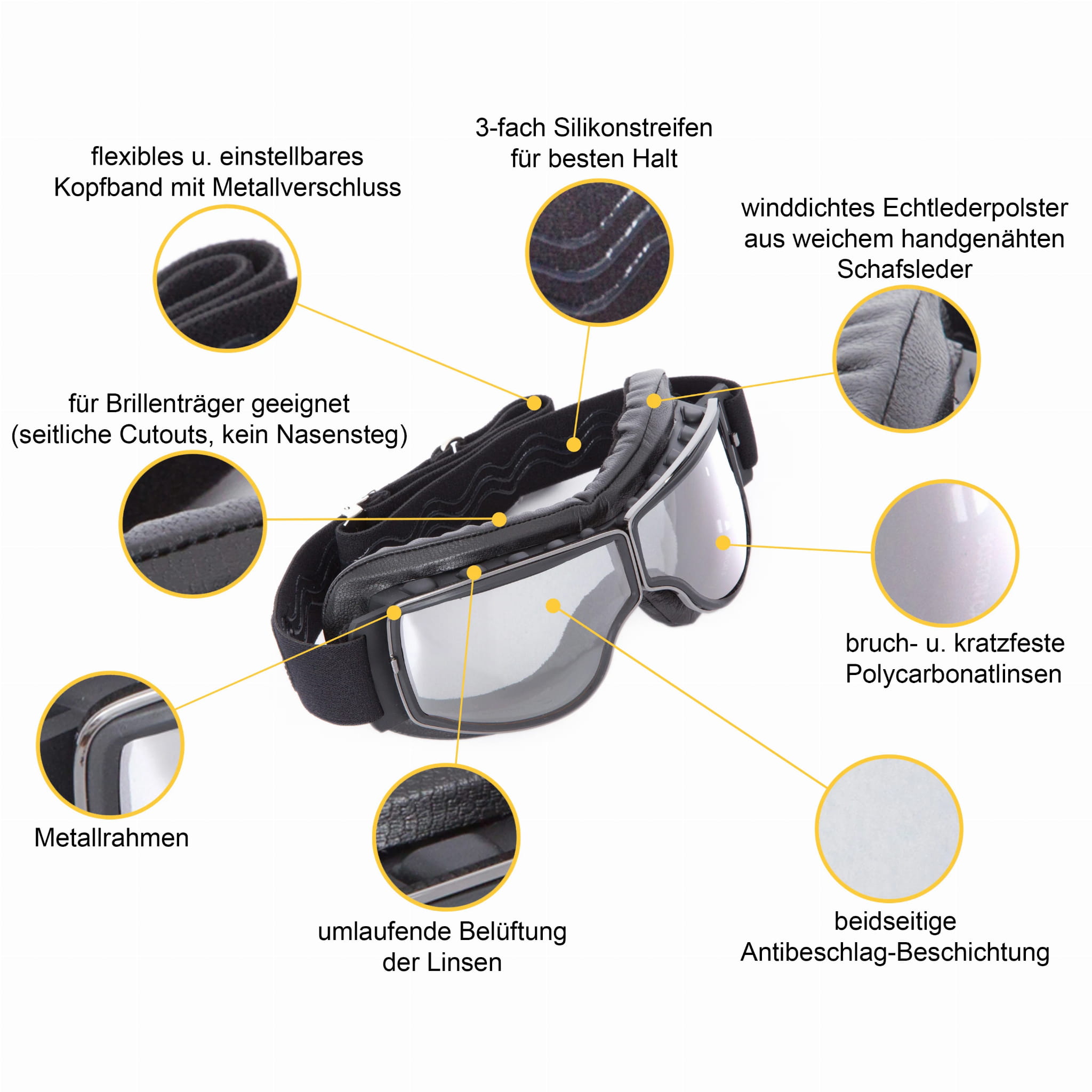 PiWear® Nevada DCL fotochromatyczne gogle motocyklowe dla osób noszących okulary korekcyjne cafe racer klasyczne motocykle bobber harley