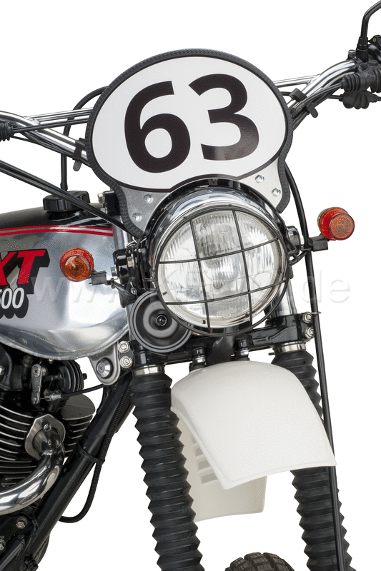 Curved start number plate with headlight cut-out, e.g. for classic dirt bikes or scrambler conversions