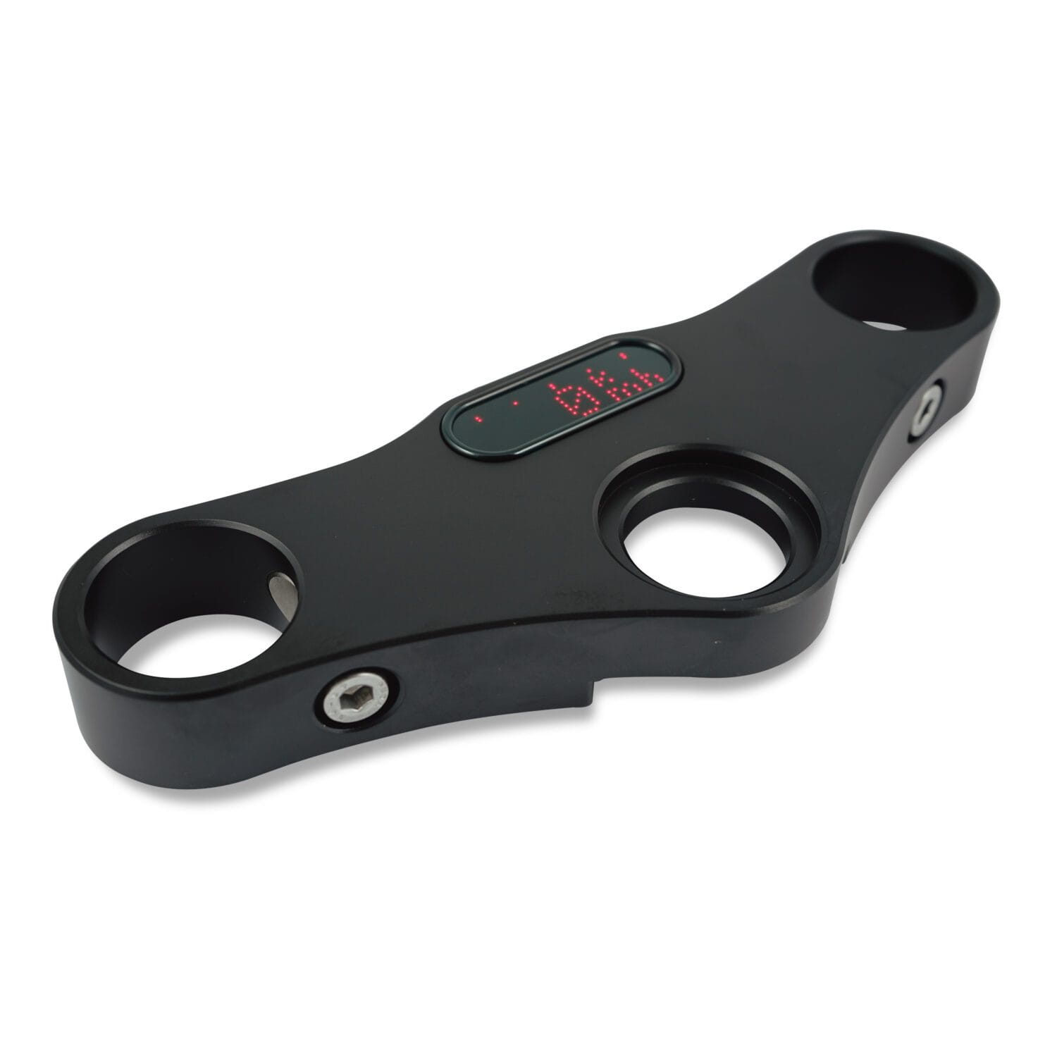 The triple tree clamp has been designed to be used together with the Motogadget “Motoscope Mini” digital speedometer.