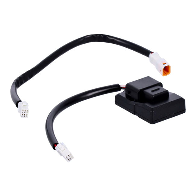 100% plug & Play high end custom replacement for the stock Street Bob speedo/tachometer. Features 8 color interchangeable LCD display. The instrument comes with a a series of programmable options. - Speedometer range (digits): 0-199 km (0-124 miles), displays per 1 kmh (mph) - Display delay : < 0.5 seconds - Internal and external odometer: 0 to 999.999 km (miles), displays per 0.1 km (mile) - Trip meter A/B: 0 to 9999.9 km (mile) with auto reset after 9999.9 km - Tire circumference adjustment: 50 to 210%, sets per per 1% - Tachometer: 0 - 10.000 RPM - Backlight colors: White, Red, Orange, Yellow, Blue, Light Blue, Purple, Green - Maintenance intervals: Off, 500 - 16.000 km (300 - 10.000 miles). Sets per 100km (miles) - Indicator lights: Right turn signal (Green), left turn signal (green), security (Red), ABS (Amber), engine oil (Red), neutral (Green), high beam (blue), low fuel (amber), fog light (green), battery (Red), engine light (amber), cruise control light (green/amber), tire pressure warning (amber) - Shift light: 2.000 to 10.000 RPM adjustable (red/white backlight flashing). Sets per 100RPM - Engine temperature: -38 to 572°F (-39 to 300°C) - Clock: 12h / 24h adjustable - Volt meter: Range 8 - 18V - Backlight Brightness: 1/5 (darkest) to 5/5 (brightest) - Tire Pressure: TPMS, FR/RR/LR when TPMS supported. Range HI, 0-73 PSI, 0-506kPa, 0-5.0bar. Displays per 1 PSI, 1 kPa, 0.1 bar - Fuel gauge: 10 levels - Voltage: 12V DC - Works in: -20~85°C - Storage Temperature: -30-90 °C - Confirm JIS D 0203 (S2) standard - Gauge size 88.2 x 67.0 x 35.2 mm - Gauge Weight: Approx. 70 grams