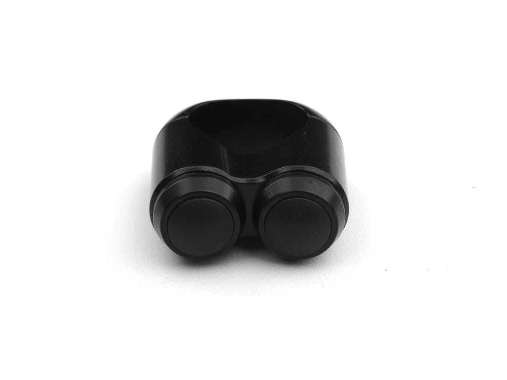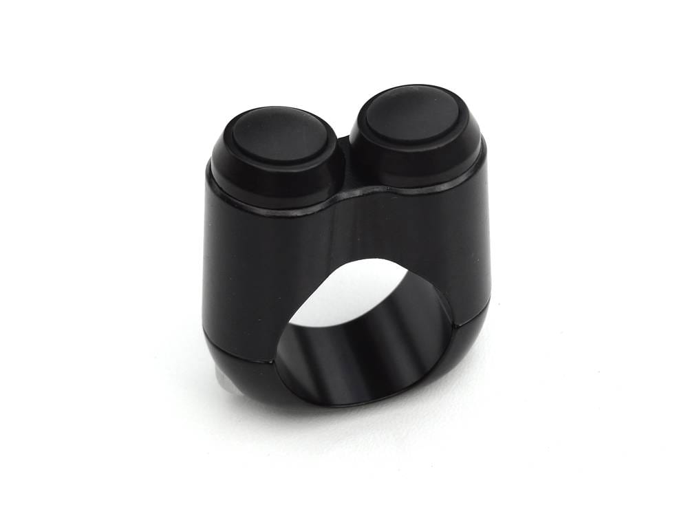 Black anodized aluminum. For 1" (25.4mm) or 7/8" (22mm) diameter handlebars. Momentary dual button micro switch, designed for use with a relay. Switches are IP65 rated, meaning totally dust-proof and low pressure water-proof. This Motown micro momentary push button switch let you do it in a retro style, showing that modern technology & old-time looks can come together into one picture perfect switch.