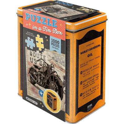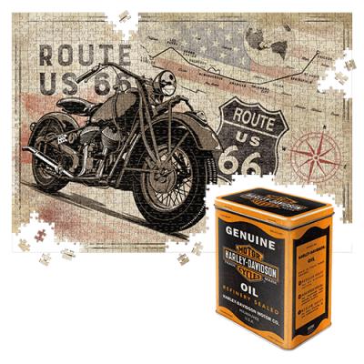 Puzzle z motocyklem Indian Chief Route 66 Map 4 stylowa metalowa puszka Harley z puzzlami