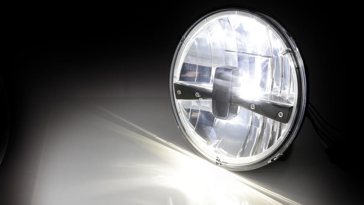 – Round 7 inch headlight with CNC mounting ring and mounting kit
