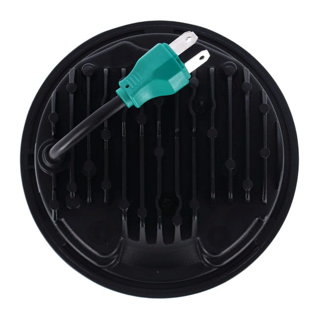 ECE & DOT approved. Without halo-ring / position light. Economical high/low beam LED conversion head lamp unit to replace the stock H4 unit. LEDs are an improvement at all levels when compared to H4 lighting and offer more effective and whiter light at 6000K, much better reliability and less amperage draw. - No halo ring / position light - Unit comes complete with wiring with a 3-prong plug that is identical to a standard H4 light bulb, allowing a plug & play conversion - Compatible with left side (UK) & right side (EU) driving - 182mm (7.16") diameter - 143mm (5.63") diameter - 88.5mm (3.48") deep - 6500K color temperature - 12-Volt DC. - Passing beam 16.5W - Driving beam 24W - Approval E24*149R00/04*0294*00
