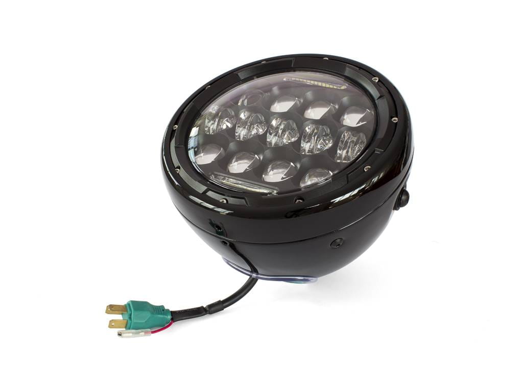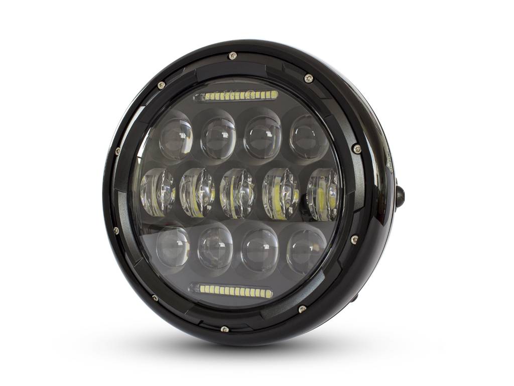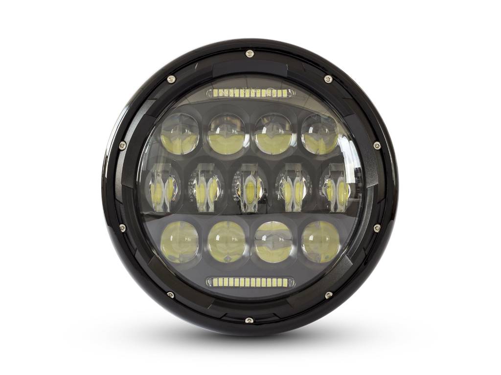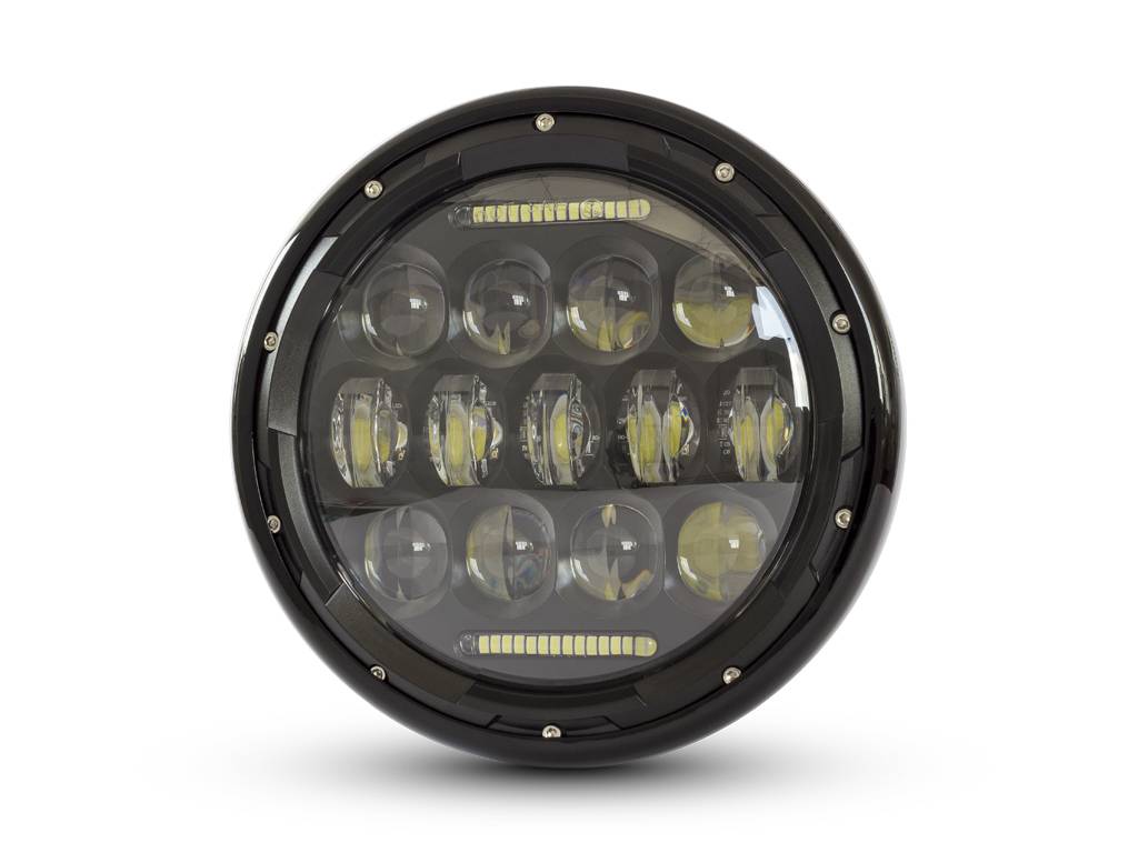 This Headlight insert is super bright and very cool. Featuring 13 x Projector LEDs for High / Low Beam + Top & Bottom horizontal LED Daytime Running Lights.