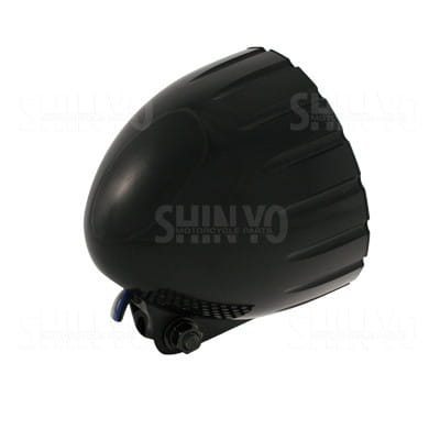 Reflektor motocyklowy wykonany z tworzywa z opcją świateł drogowych / mijania / postojowych. Mocowanie: od spodu. Klasyczna linia w połączeniu z przejrzystym wkładem daje ciekawy efekt wizualny i zapewnia odpowiednie oświetlenie. Homologowany. Obudowa z charakterystycznymi rowkami.