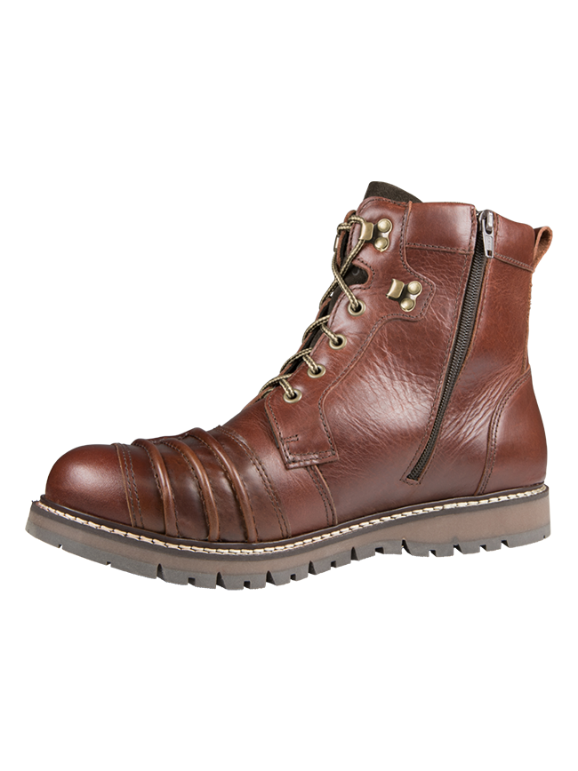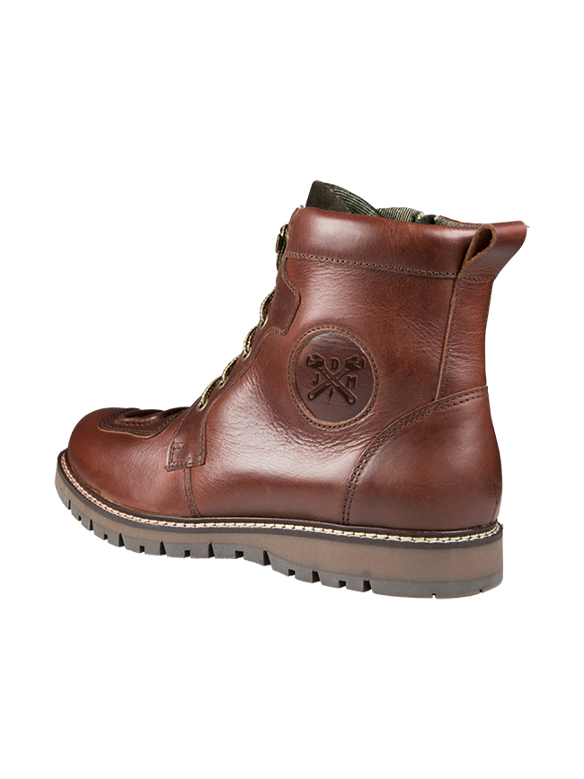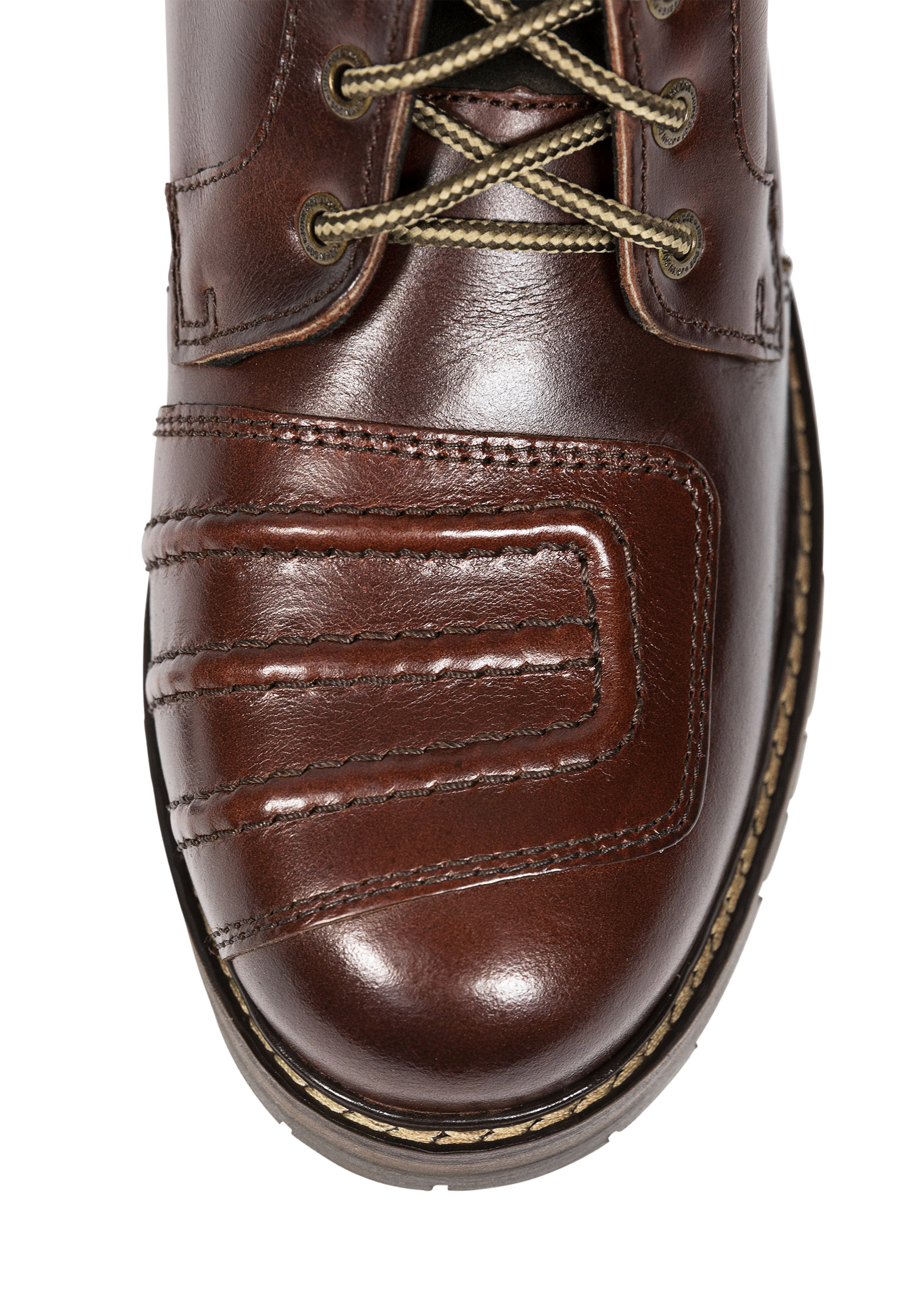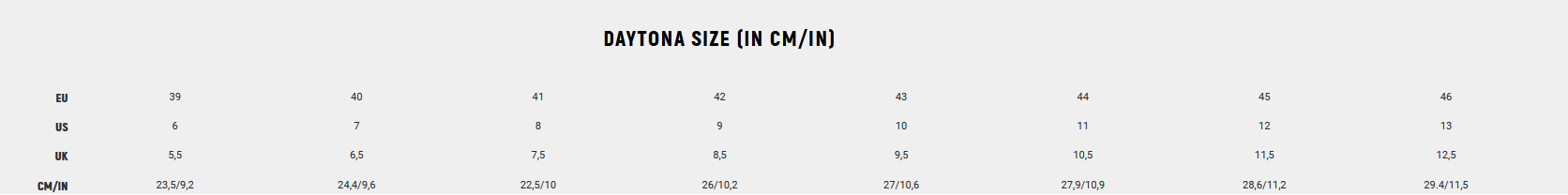 Daytona oferuje solidne skórzane buty z interesujacymi detalami, a także wzmocnieniem kostki, pięty i przedniej części stopy dla całkowitej ochrony. Dodatkowe wzmocnienie ze skóry zapewnia dodatkową przyczepność podczas zmiany biegów. Dodatkowo język wyposażony jest w barierę zapobiegającą przedostawaniu się wody do buta. Boczny zamek zwiększa wygodę i komfort. Jak można się spodziewać, Daytona jest również wyposażona w odporną na olej, pochłaniającą wibracje, antypoślizgową podeszwę.
