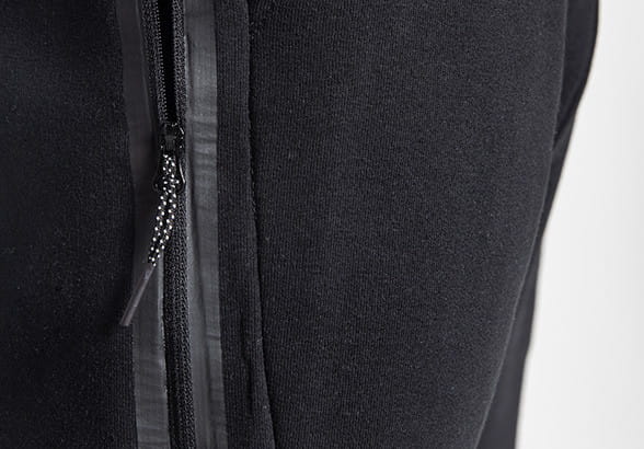 Prosty krój ze zwężaną nogawką, elastyczny pas, oraz zasuwane kieszenie aby przechować w nich najpotrzebniejsze rzeczy.