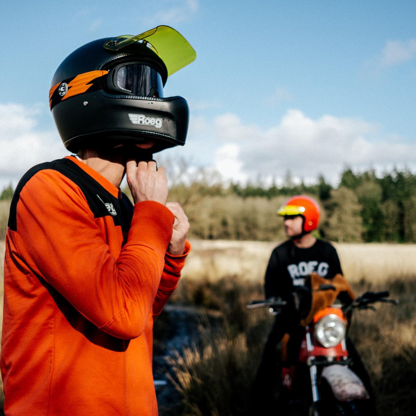 Stylowa męska bluza firmy ROEG® wykonana jest z miękkiej mieszanki bawełny, zapewniającej całodzienny komfort i trwałość. Prosty klasyczny fason. Bez kaptura na długi rękaw. Świetna do noszenia na co dzień lub do jazdy wyczynowej na motocyklu. Wykonana na wzór starych flattracker'owych bluz w stylu vintage enduro.