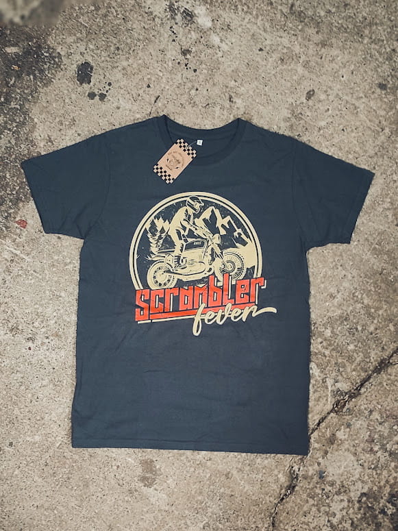 SCRAMBLER FEVER BMW T-SHIRT GREY ŚWIETNA SZARA KOSZULKA Z NIEPOWTARZALNA GRAFIKĄ MOTOCYKLOWĄ