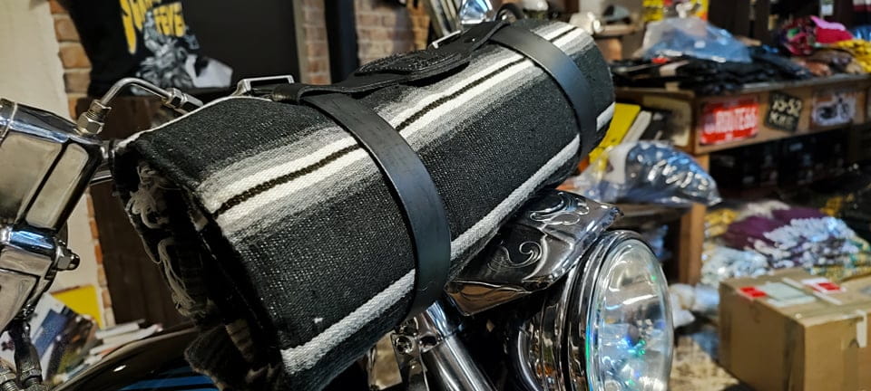 Mega stylowe koce meksykańskie, autentycznie wykonane w Meksyku. Koce możesz przymocować w dowolnym miejscu: czy to na kierownicy, nprzy siedzeniu, na błotniku czy na sissy bar.