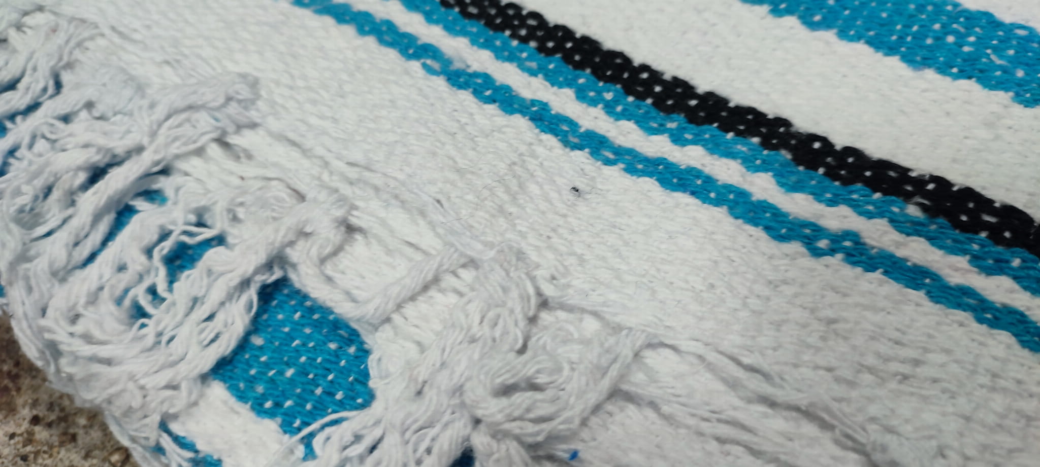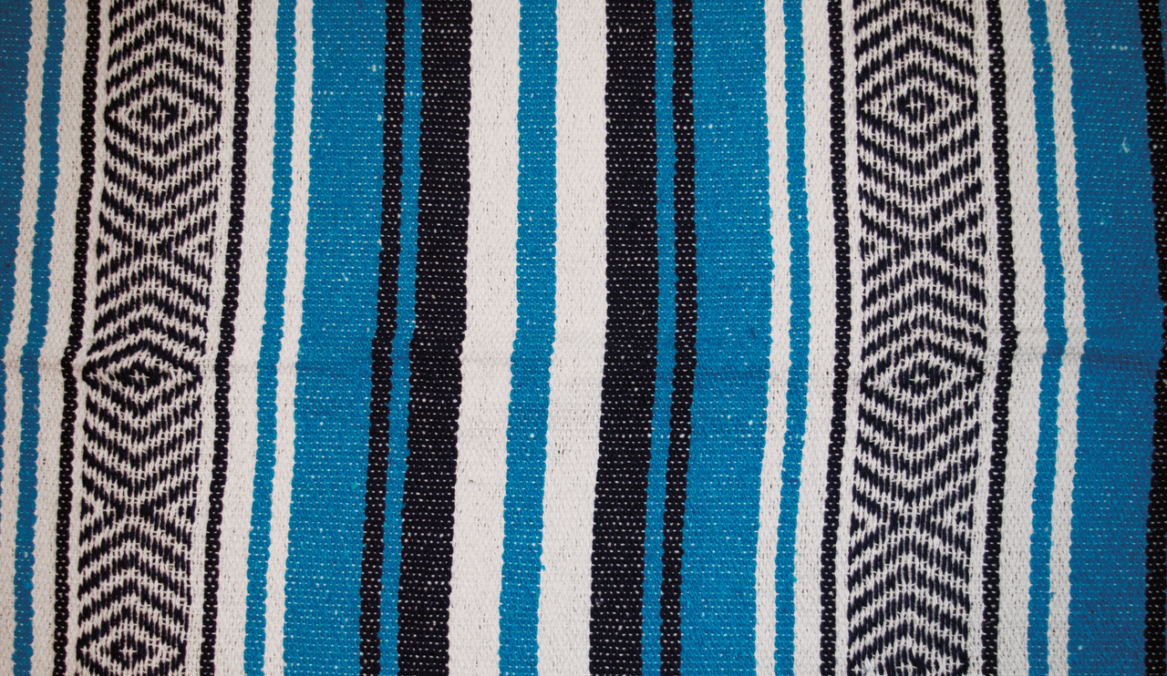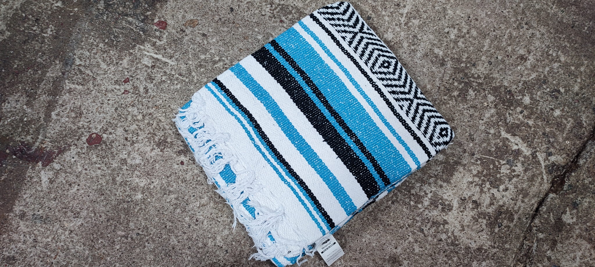 SZARO-TURKUSOWO-BIAŁY MEKSYKAŃSKI KOC MOTOCYKLOWY VERACRUZ CHOPPER BOBBER HARLEY KOC MEKSYKAŃSKI