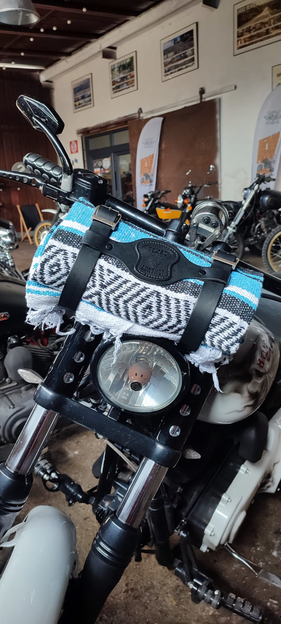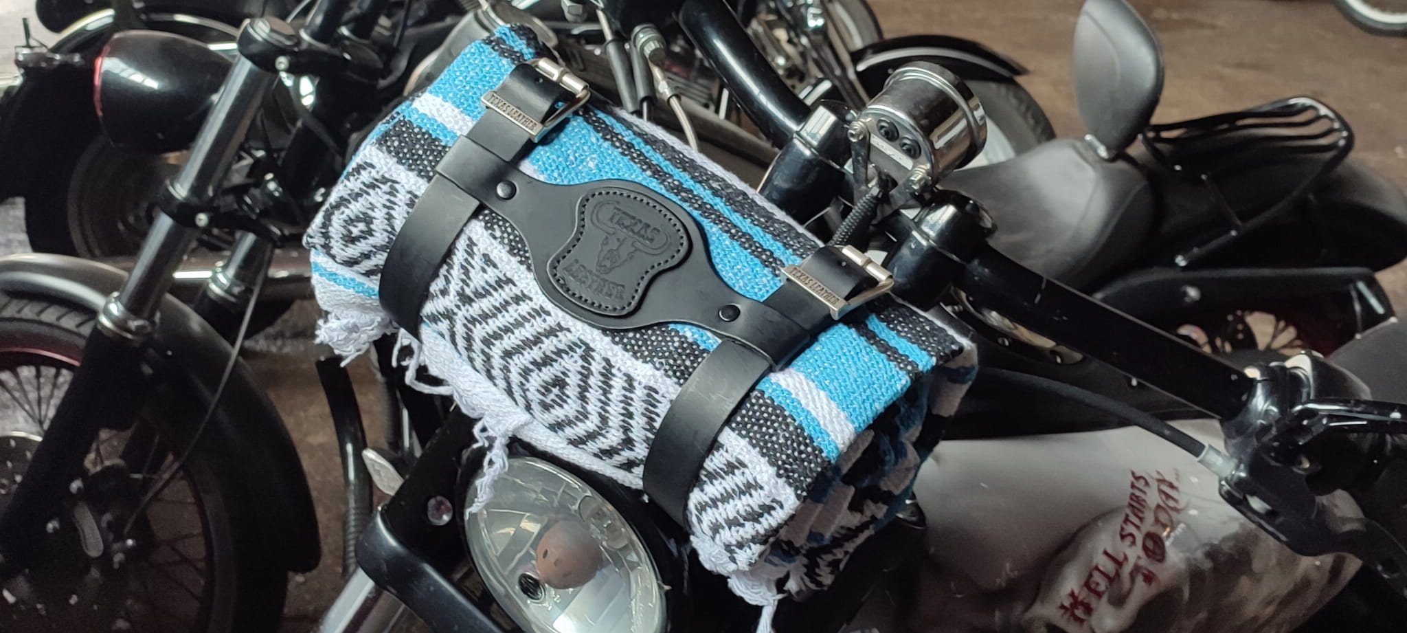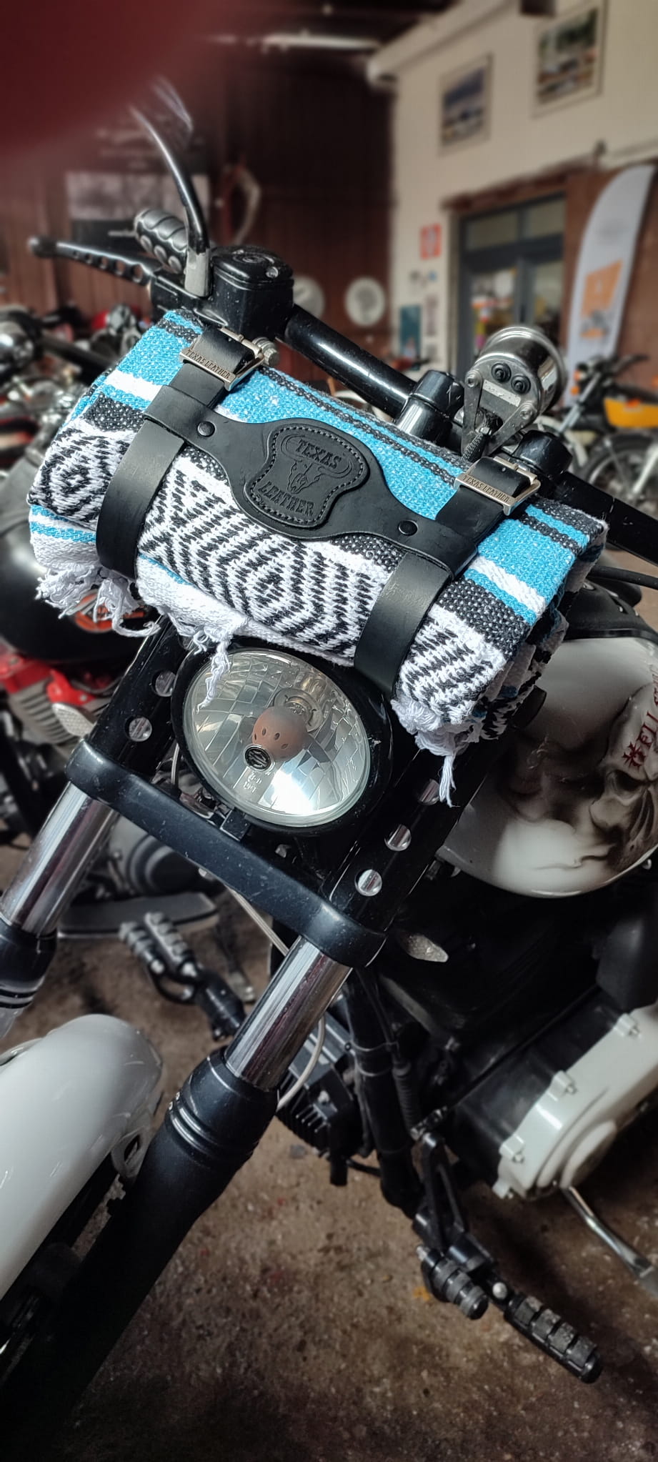 Mega stylowe koce meksykańskie, autentycznie wykonane w Meksyku. Koce możesz przymocować w dowolnym miejscu: czy to na kierownicy, przy siedzeniu, na błotniku czy na sissy bar.