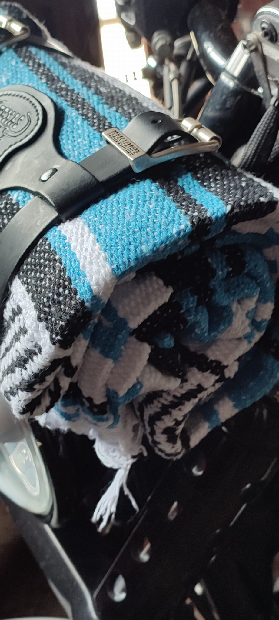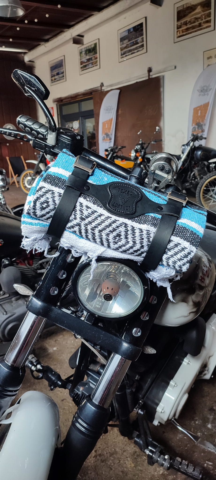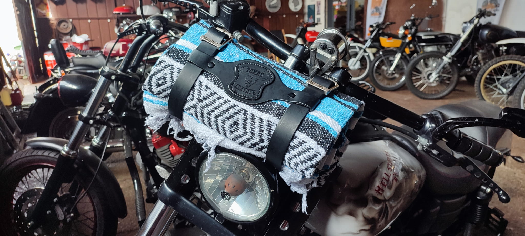 Mega stylowe koce meksykańskie, autentycznie wykonane w Meksyku. Koce możesz przymocować w dowolnym miejscu: czy to na kierownicy, przy siedzeniu, na błotniku czy na sissy bar.