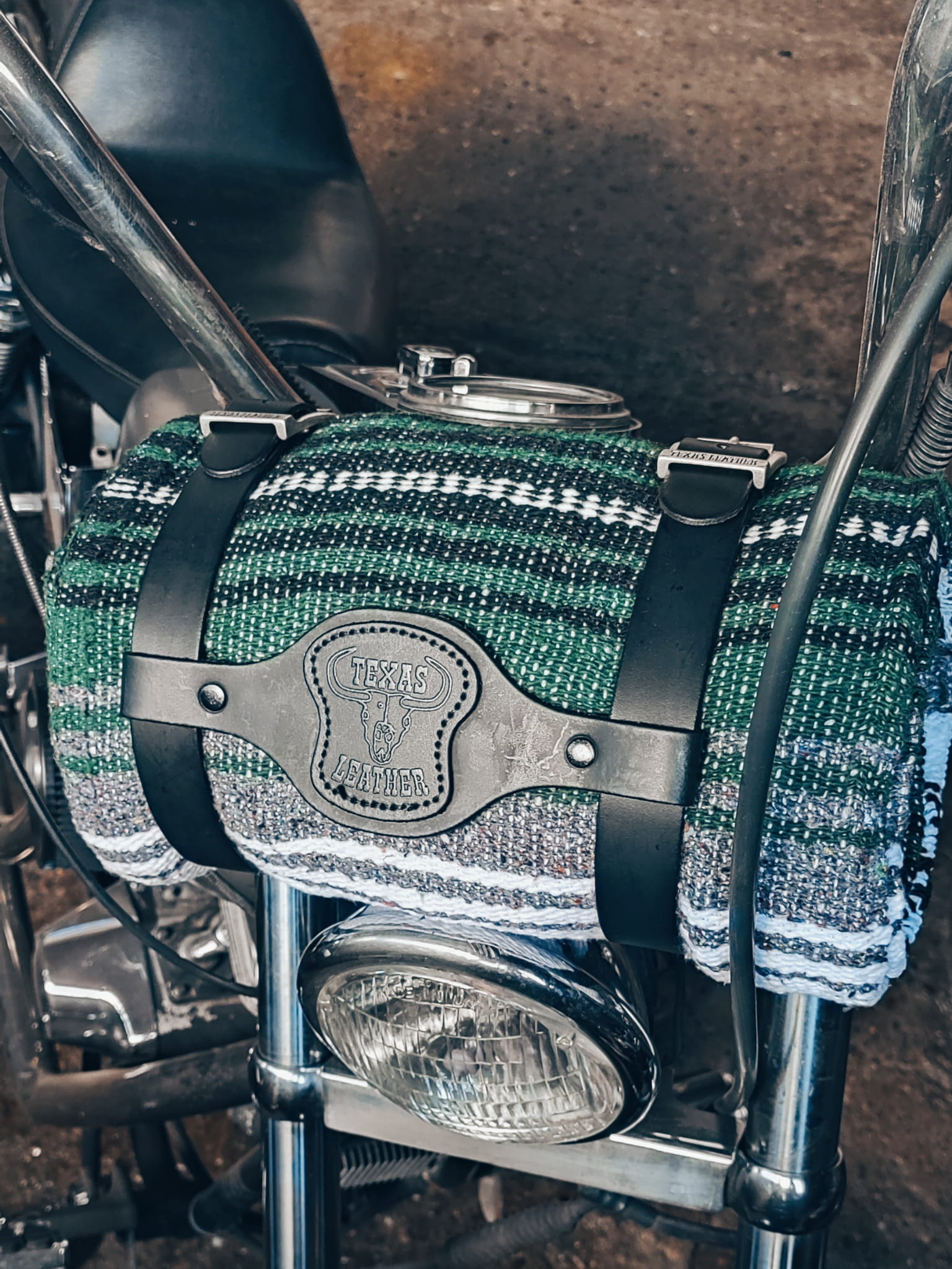 Mega stylowe koce meksykańskie, autentycznie wykonane w Meksyku. Koce możesz przymocować w dowolnym miejscu: czy to na kierownicy, przy siedzeniu, na błotniku czy na sissy bar.
