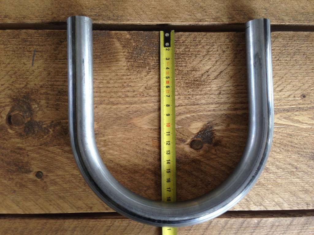 Rurka: średnica 1"/25 mm. Wygięta dokładnie o 180 stopni. Wykonana ze stali bardzo wysokiej jakości (bez stali nierdzewnej) Grubość ścianki wynosi 2 mm. Kolano 25 mm ma średnicę zewnętrzną (tzn. w miejscu styku z ramą) 237 m.