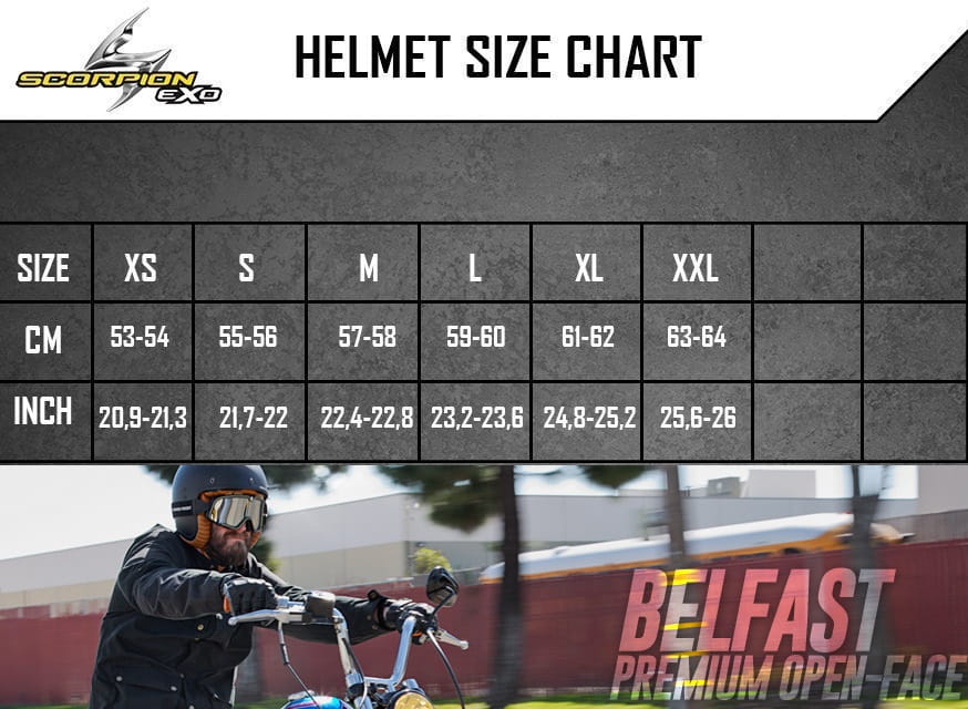 Kask motocyklowy Scorpion Belfast to nowoczesny kask typu jet w stylu retro. Ponieważ skorupa tego kasku jest wykonana z niezwykle mocnego i lekkiego włókna szklanego, prawie nie czujesz tego hełmu na głowie. Mała skorupa kasku i zintegrowana osłona przeciwsłoneczna nadają temu kaskowi minimalistyczny wygląd.