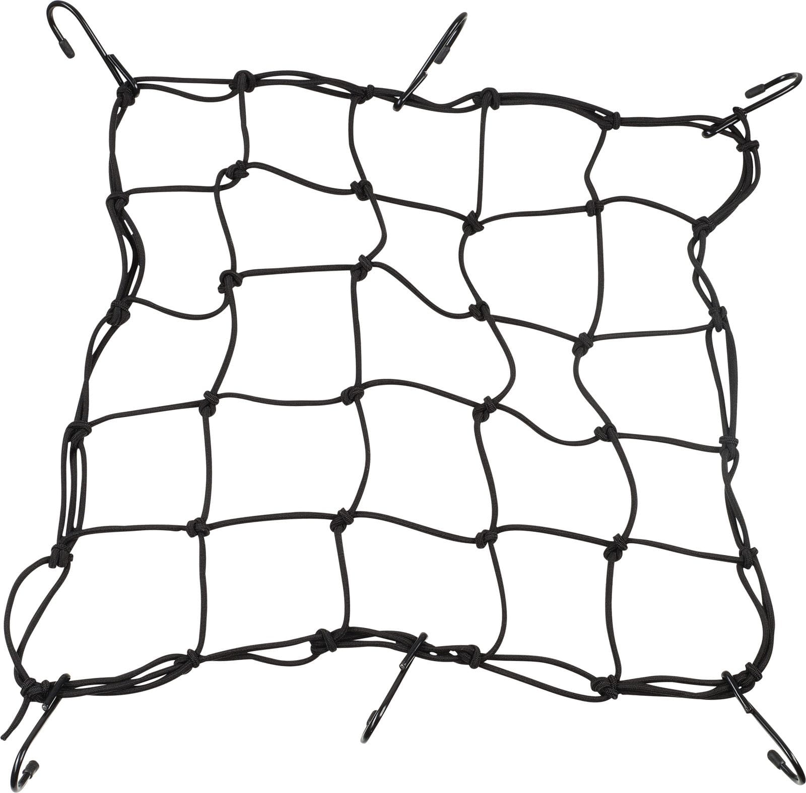 Siatka bagażowa o wymiarach 40x40cm. Posiada 6 metalowych haczyków pokrytych tworzywem sztucznym. Kolor siatki - czarny.