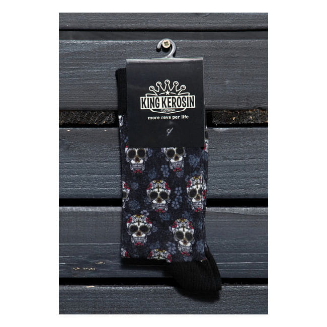 Skarpetki w czachy King Kerosin AOP Sugar Skull socks black skarpetki czarne z czaszkami oldschool vintage