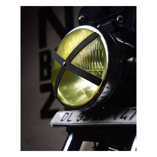 Skórzana osłona na reflektor X Trip Machine Headlight X Black czarne skórzane paski na reflektor cafe racer style