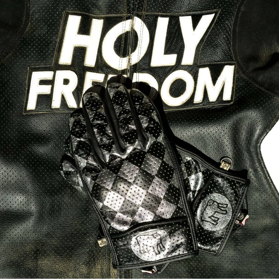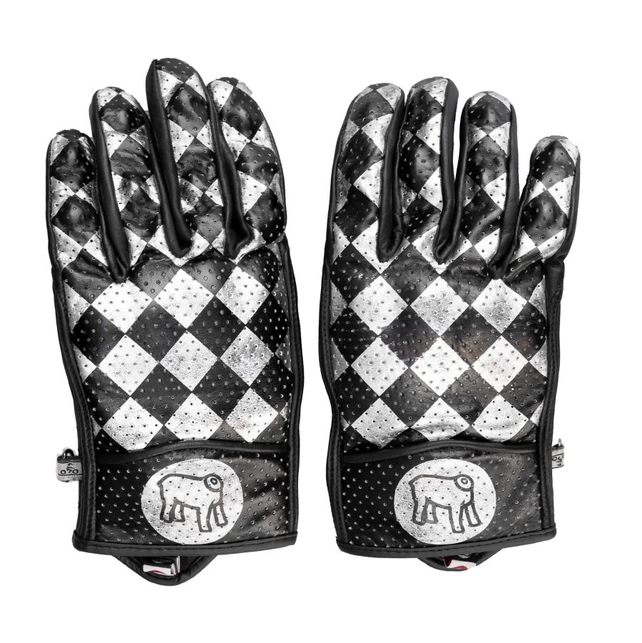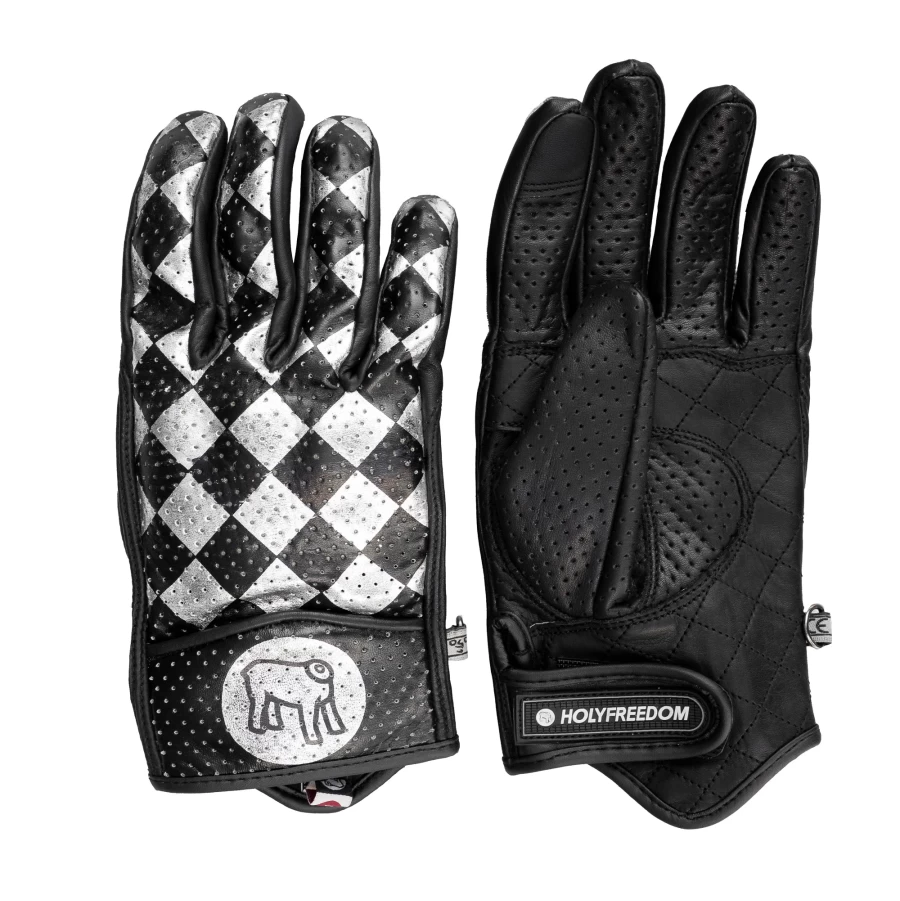 Skórzane rękawice w szachownicę srebrno-czarną Holy Freedom Bullit Totem gloves