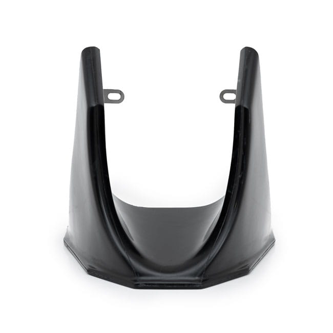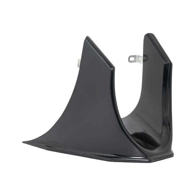 An instant aggressive look with badass touch. Does not interfere with cooling of voltage regulator like some others tend to do. Made of hand-laid unpainted gel coated fiberglass that is very stiff, strong, straight and light with a backing of wire mesh. Bolt-on installation ease and includes required hardware and a mounting bracket. Note: Fitment checks before painting and final assembly.