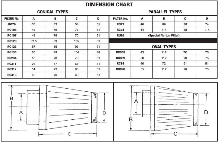 Stożkowy filtr powietrza EBC 43 x 112 x 70mm owalny