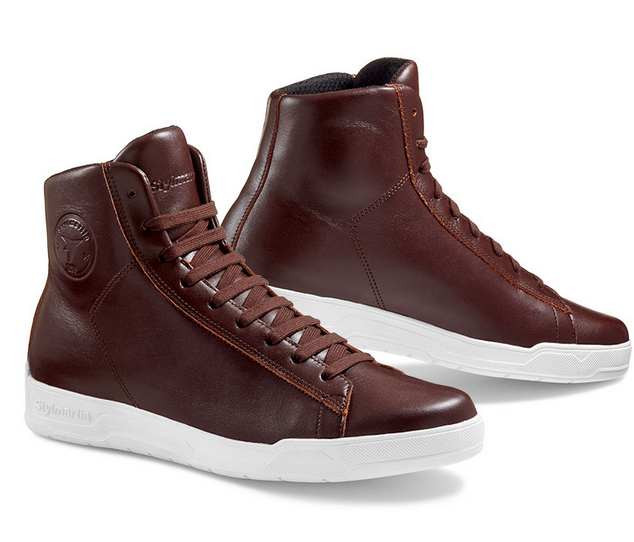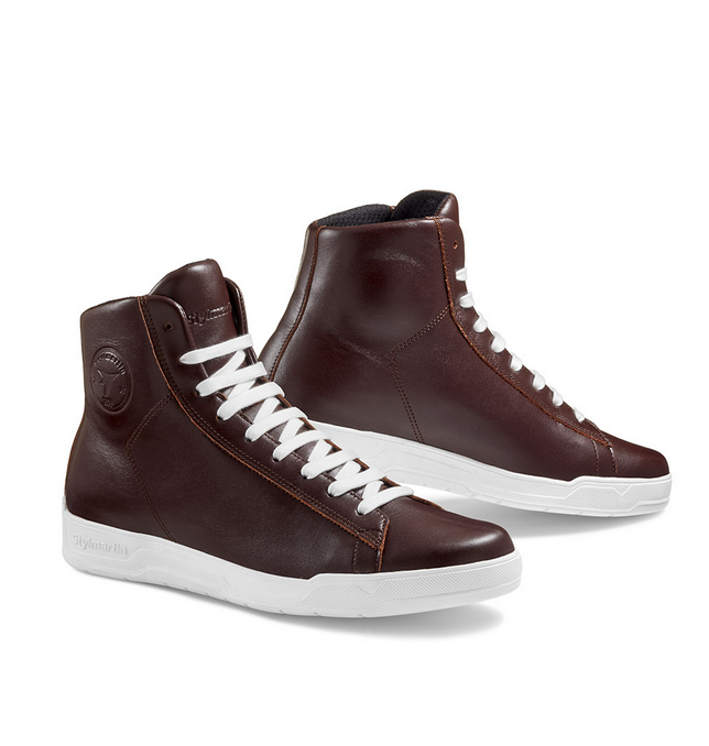 Stylmartin Core brown/white brązowe skórzane trampki z białą podeszwą buty na motocykl vintage