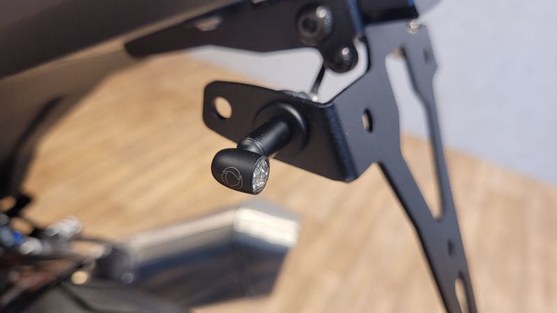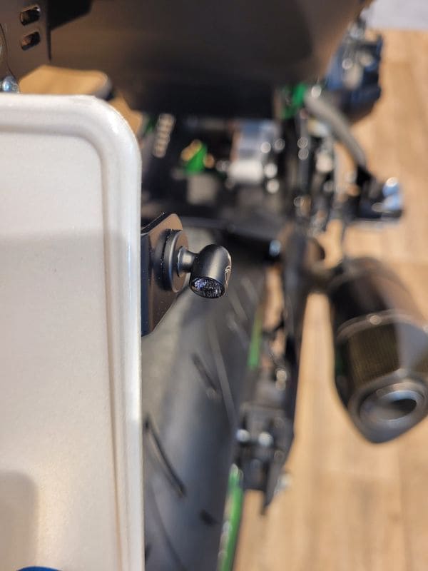 Dark lens. Black housing. White light. With an overall length of 14mm a maximum diameter of 10mm with a lens diameter of just 7.8mm the Spot is an extremely small turn signal with a high quality metal housing. Where some small lower cost turn signals may make safely navigating through through traffic a challenge. Not so with the Spot, of which the High Output power LED in combination with the special Extranz Extreme Optical Transparency technology actually gives it a colossal light output compared to its size. Highly visible, only when lighted, in any day or night circumstance. With M5 x 6.5mm threads. - ECE approved for front use - EXtranz® - Extreme Optical Transparency Technology - Kellermann HighPower LED Technology - Longlife Protection Guard®, IC operated, 330 kHz - High quality metal housing - Suitable for 12 volt DC applications - M5x0.5x6.5 threaded - Dimensions: Length 14mm, max. diameter 10mm, lens diameter 7,8mm - European design protection