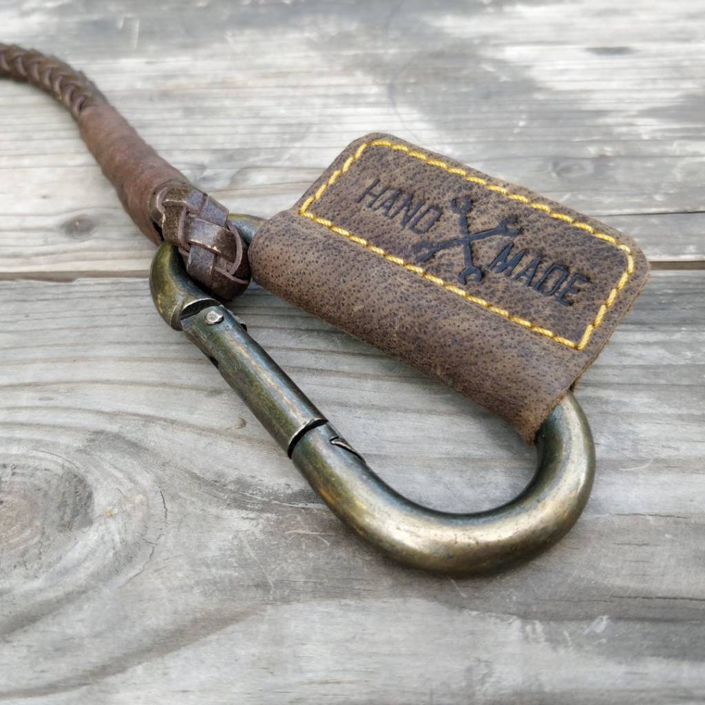 Wykonany ręcznie w tradycyjny sposób, bez kompromisów od pierwszego cięcia do ostatniego ściegu. Nie ma żadnych tanich tworzyw sztucznych, tkanin, gumy ani innych wynalazków. Wykonany z najwyższej jakości skóry która wraz z wiekiem staje i się się jeszcze bardziej wyrazista. Noś klucze stylowo dzięki ręcznie robionemu plecionemu brelokowi od Trip Machine.Skórzany warkocz został ręcznie wykończony do perfekcji. Wytrzymałe metalowe karabińczyki są zbudowane tak, aby były trwałe i sprawiały, że klucze będą zawsze bezpiecznie przymocowane do spodni. Metalowe okucia są wykończone w stylu antycznym, co zapewnia dodatkowo styl vintage.
