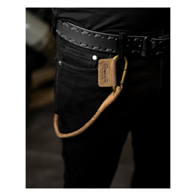 TRIP MACHINE BRAIDED KEY CHAIN TOBACCO SKÓRZANY RZEMYK DŁUGI BRELOK DO KLUCZY MOTOCYKLOWY