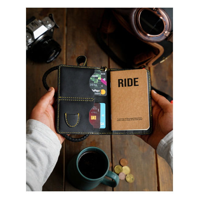 TRIP MACHINE EXPLORER BLACK SKÓRZANY MOTOCYKLOWY PORTFEL NA RZEMYKU SOIDNY Z GRUBEJ SKÓRY Z NOTESEM