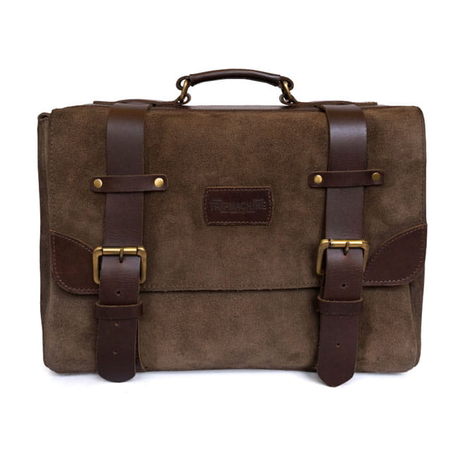 Probably the toughest bag that you'll ever own. Use it and forget it. Made from special dust and water repellant genuine leather suede for any situation. Handmade with the build quality, and charm, of the good old days. Designed for easy on/off the motorcycle in a matter of seconds. Carry it with you when you are not riding by slipping it over your shoulder with the included shoulder strap. Contains a laptop compartment and 3 small pockets to carry your essentials. 100% leather, no cloth, rubber or plastics. Approximate dimensions: 15" (38cm) long x 11" (28cm) high x 5" (12.7cm) wide