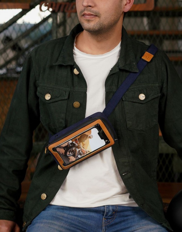 Trip Machine Navigator Case blue & tan mała elegancka torba na zbiornik tank bag retro vintage torba na telefon i dokumenty
