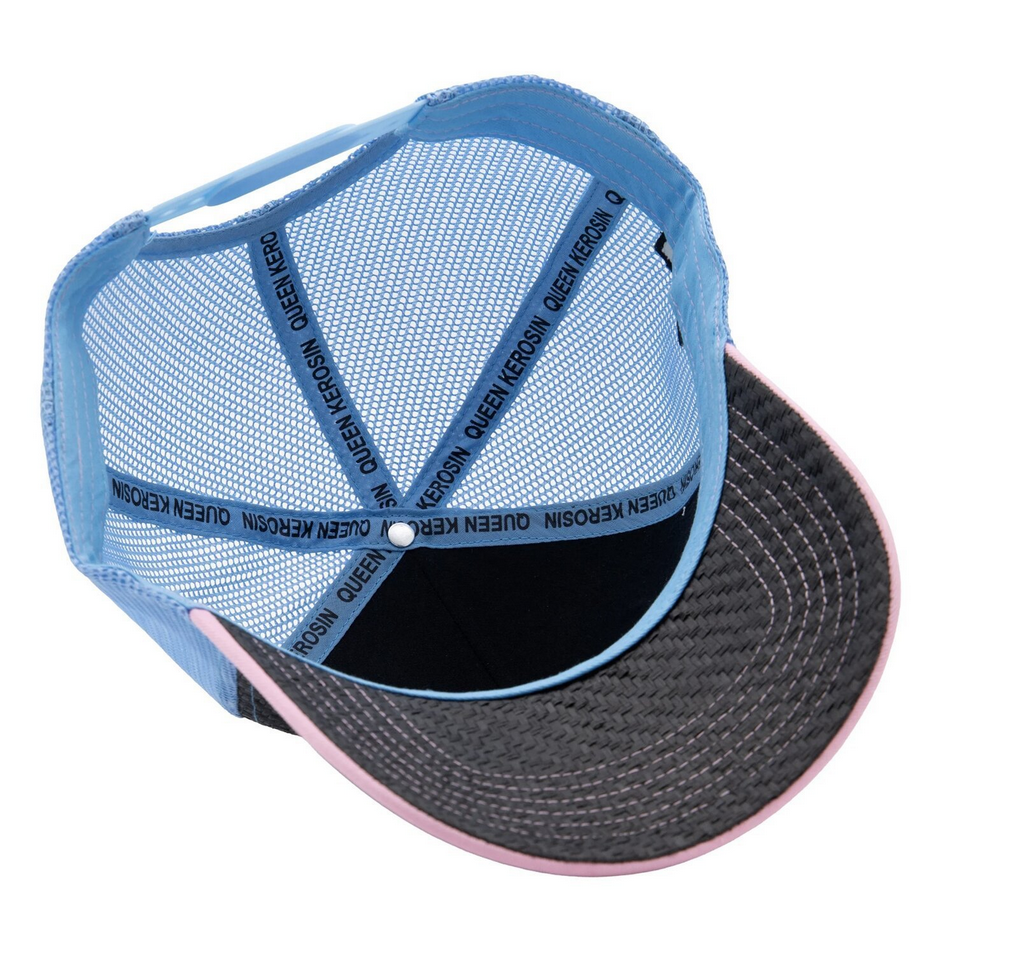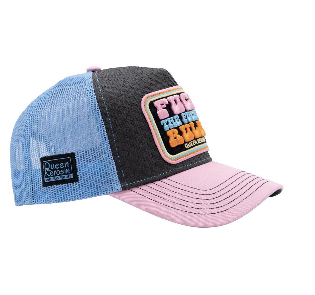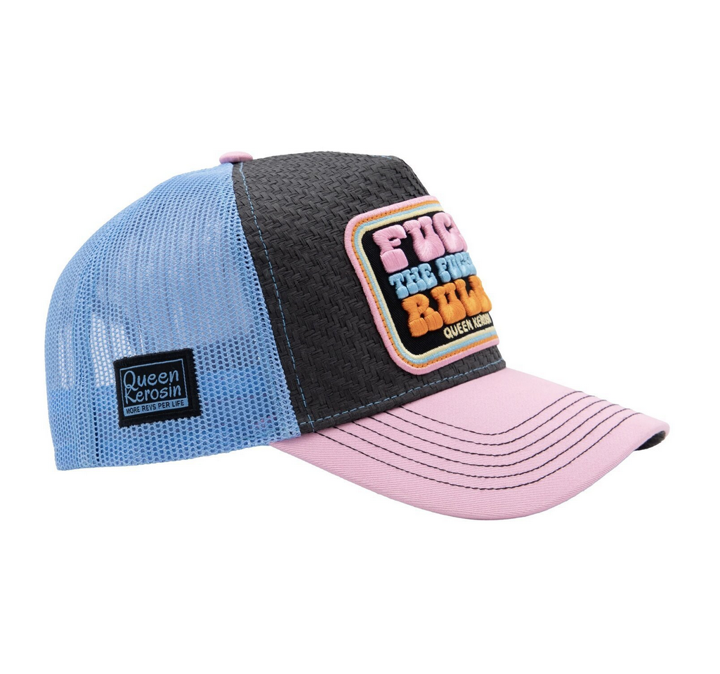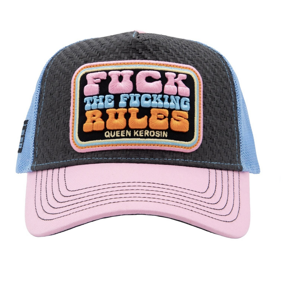 Truckerka Queen Kerosin Fuck Rules trucker cap rose damska czapka z daszkiem truckerka różowo-błękitno-szara