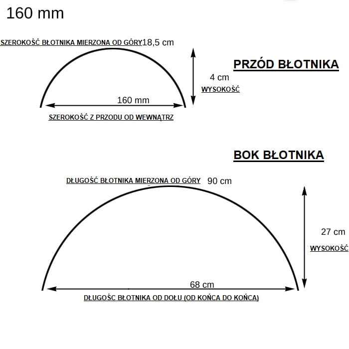 - Dalsze wymiary błotnika tylnego koła motocykla znajdują się na rysunku (zdjęcia).