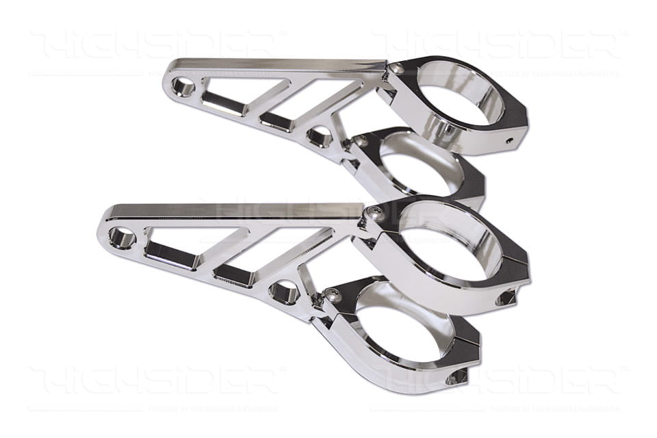 Masywny kształt i wygląd. Zobacz zdjęcia! Wykonane maszynowo CNC uniwersalne obejmy lampy - łatwy montaż bez konieczności wysuwania lag. Zestaw zawiera 4 obejmy, 2 uchwyty i niezbędne redukcje w zależności od wybranego rozmiaru obejm. Uchwyty posiadają dodatkowe otwory 10mm umożliwiające montaż kierunkowskazów.