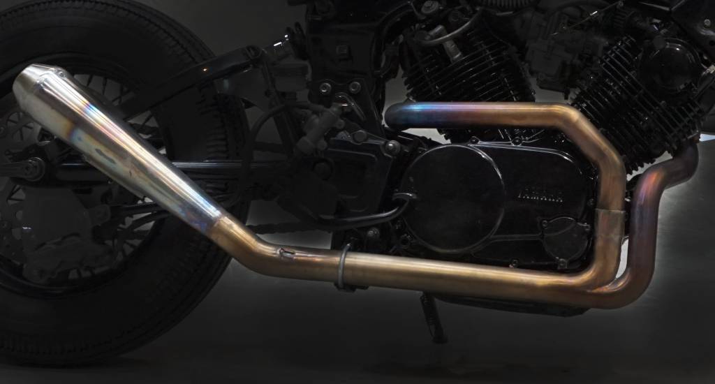 Ręcznie robiony układ wydechowy do pierwszych modeli Yamaha XV750/920/TR1/1000 SE (centralny amortyzator).