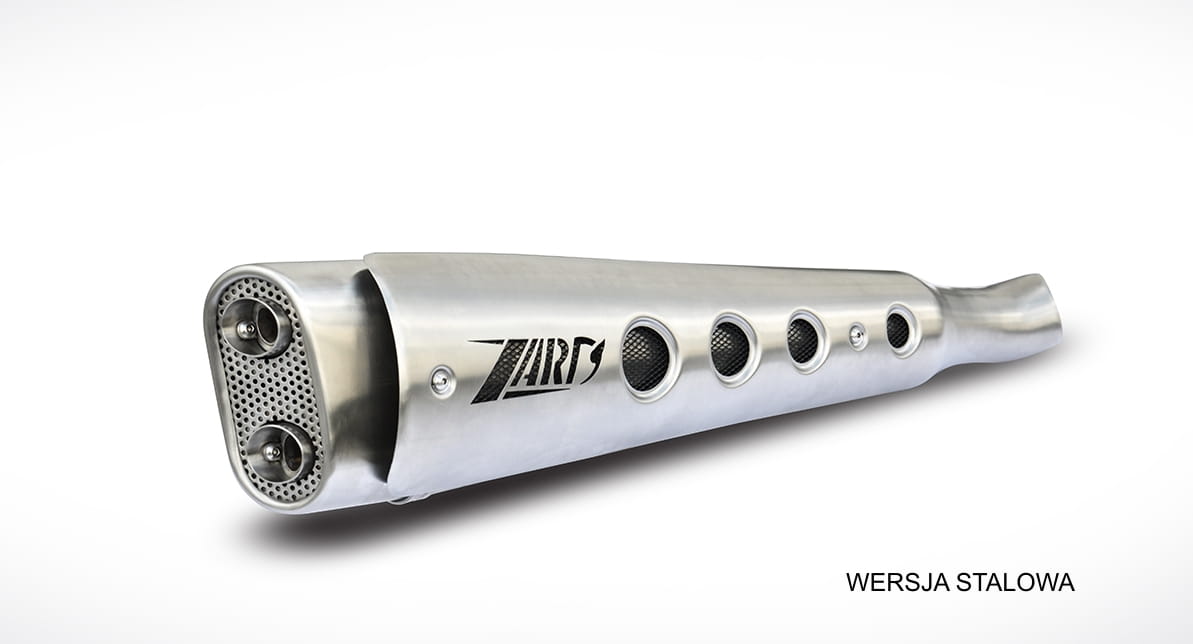 Kompletny układ wydechowy 2 w 1 z tłumikiem ZARD High Mount Short. Waga oryginału: 11,6 kg. Waga układu ZARD: 3,9 kg. Zapewnia wzrost mocy i momentu w środkowym i górnym zakresie obrotów. Niesamowity dźwięk. Zaprojektowany oddzielnie dla wersji na gaźnikach i na wtrysku. Dostępny w różnych wariantach wykończenia do wyboru.