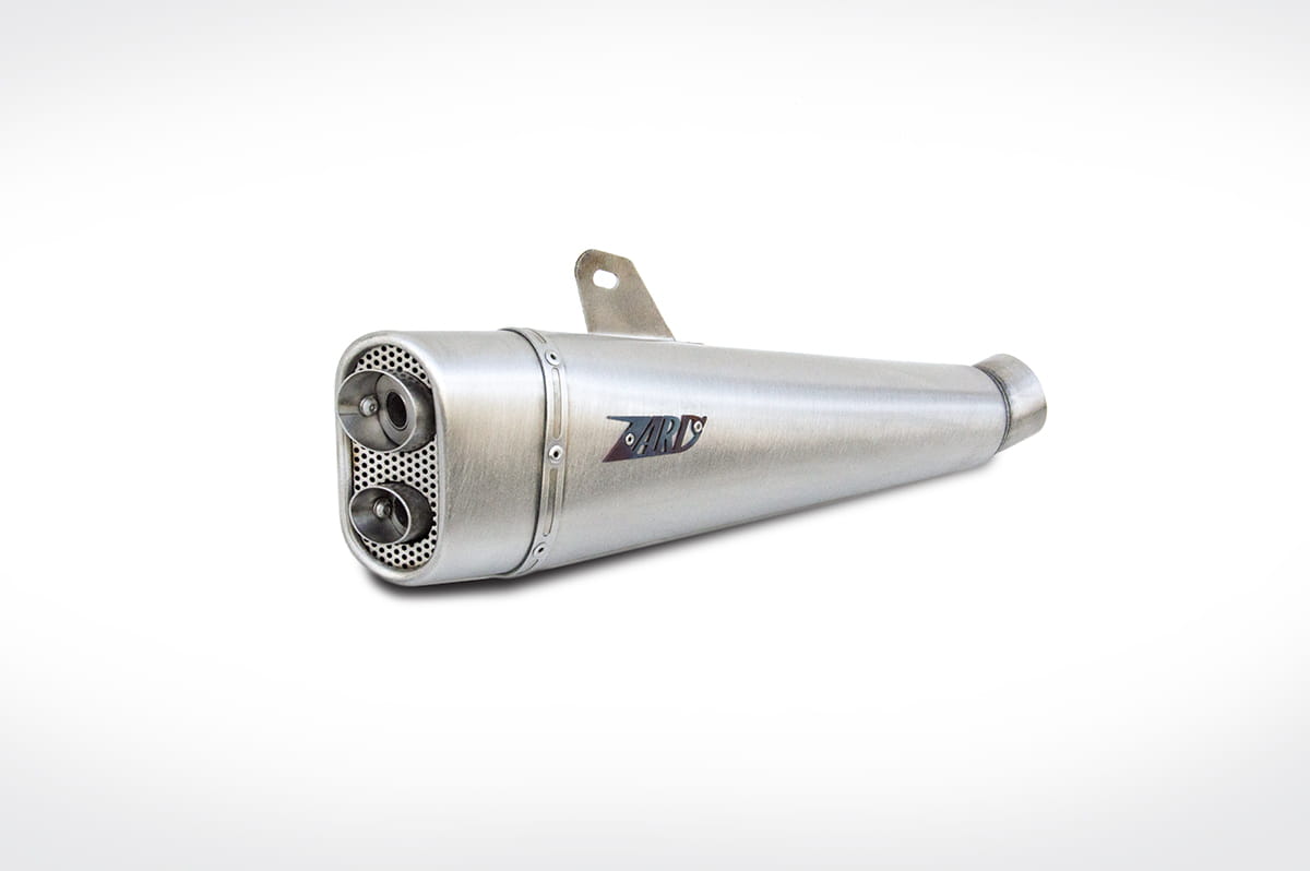 Kompletny układ wydechowy 2 w 1 z tłumikiem ZARD Low Mount Short. Waga oryginału: 9,3 kg. Waga układu ZARD: 5,5 kg. Zapewnia wzrost mocy i momentu w środkowym i górnym zakresie obrotów. Niesamowity dźwięk. Zaprojektowany oddzielnie dla wersji na gaźnikach i na wtrysku. Dostępny w różnych wariantach wykończenia do wyboru.