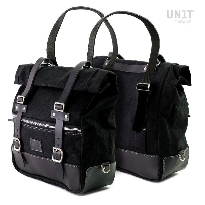 Unit Garage two universal side bags in Canvas zestaw dwóch stylowych sakw na motocykl vintage scrambler cafe racer
