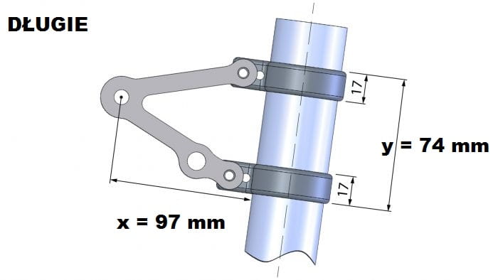 - DŁUGIE X = 97 mm Y = 74 m, szerokość mocowania 17 mm.