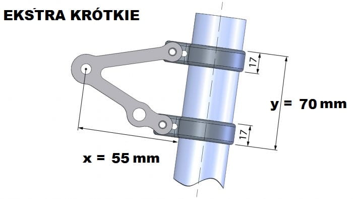 - BARDZO KRÓTKIE X = 55 mm Y = 70 mm, szerokość mocowania 17 mm