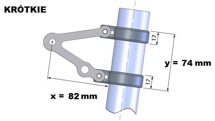 - KRÓTKIE X = 82 mm Y = 74 mm, szerokość mocowania 17 mm