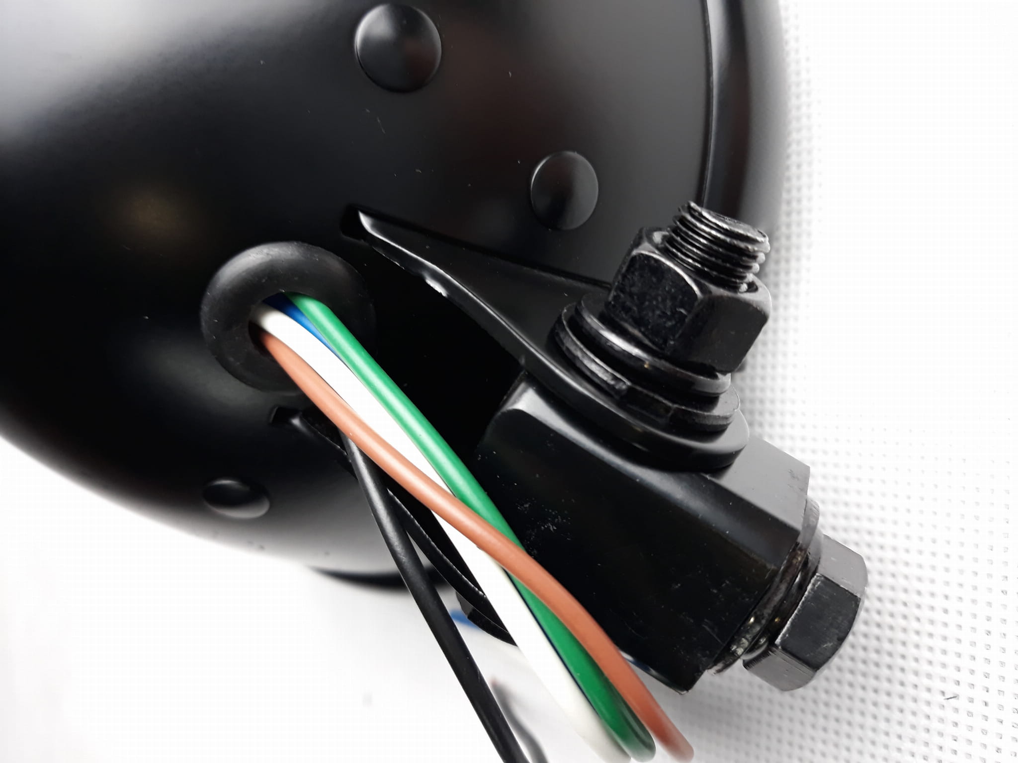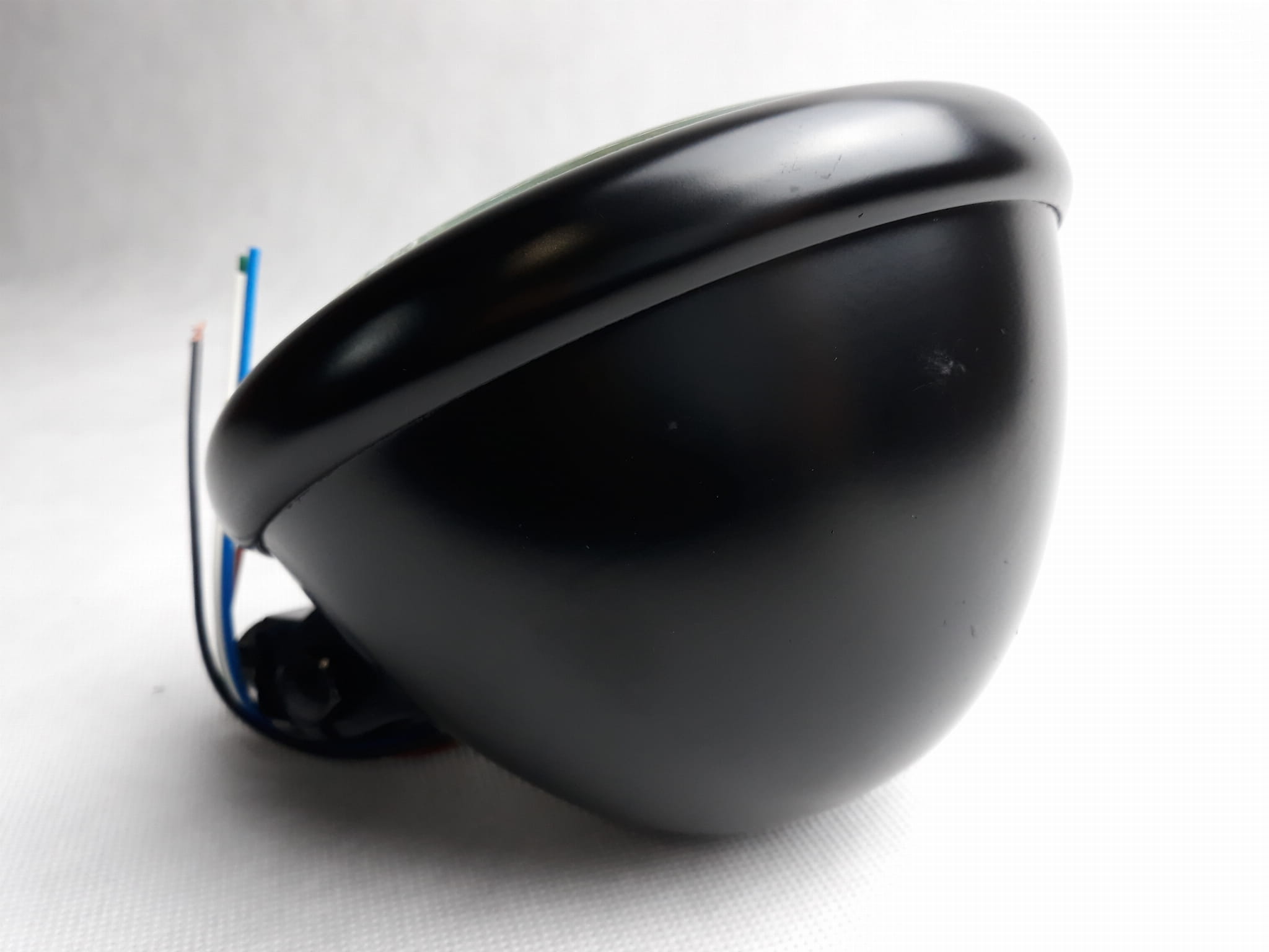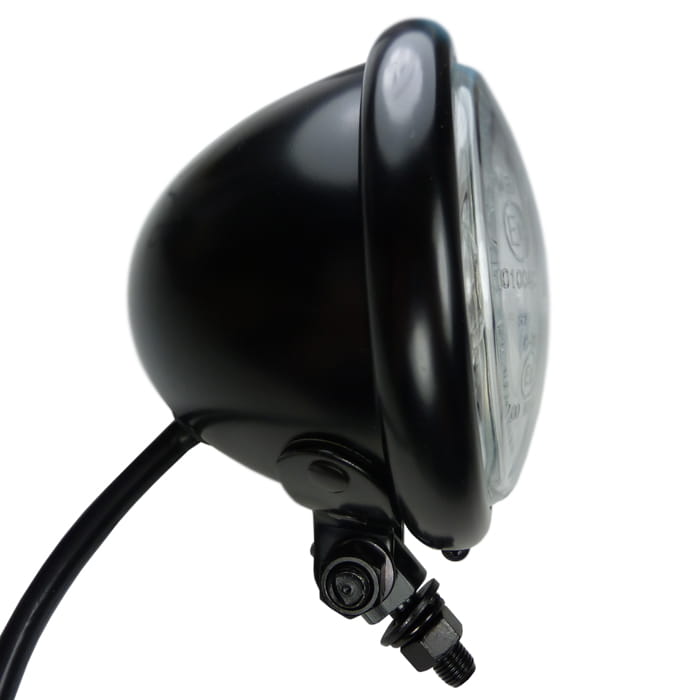 Klasyczna lampa przednia, idealnie nadaje się do zamontowania w motocyklach typu: cafe racer, scrambler, bobber, chopper, harley lub innych projektów customowych.