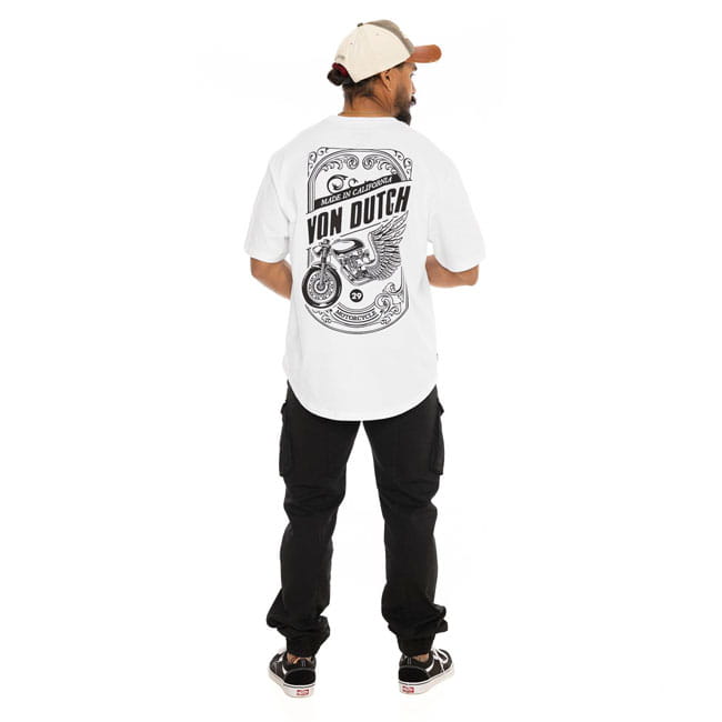 Von Dutch Frame t-shirt white biała koszulka z fajna grafika motocyklowa cafe racer
